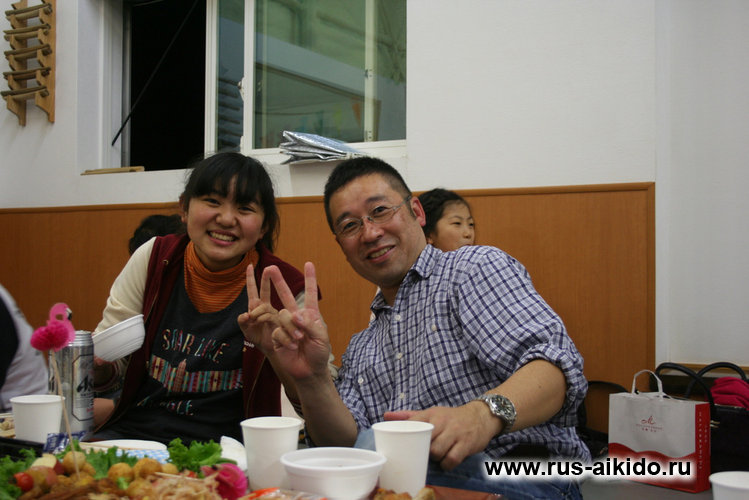 В первые выходные нам повезло попасть на праздник – Митсухаши Сенсей и его ученики отмечали очередную годовщину существования додзё, а если учесть, что ученики участвовали в постройке, то праздник становился вдвойне теплым. Само празднование было в додзё, где расставили столы, пришло около 25-30 человек, были и взрослые, и дети – ученики Soruy Dojo. Было очень здорово и душевно увидеть людей не только на татами, но и в такой теплой дружеской атмосфере.