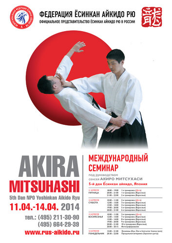 Мы рады пригласить Вас принять участие в ежегодном открытом семинаре по «Ёсинкан Айкидо Рю» под руководством Сенсея Акира Митсухаси 5 дан Ёсинкан Айкидо.
